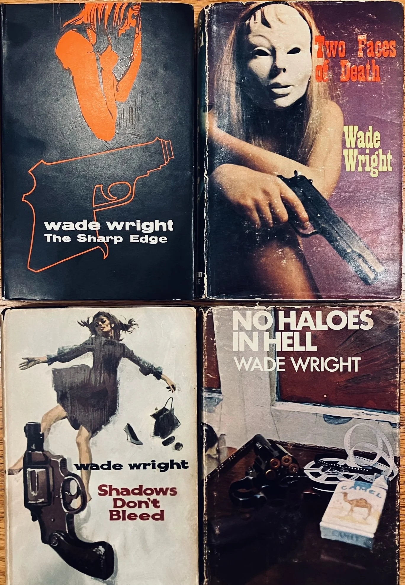 Look at the four book covers on the left. What immediately comes to mind? If you said, Detective Novel, you’d be correct. These books were written in the late 60’s by a friend of my parents, Wade Wright. I remember looking at the covers as a kid and being intrigued. The woman in the mask really creeped me out back then. Even now I still find the cover strangely unsettling. I don’t read detective novels but if I did, I’d almost certainly pick that one.